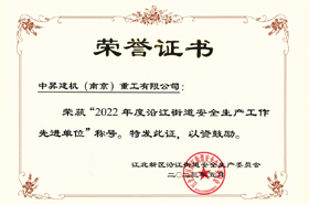 為表彰先進(jìn),進(jìn)一步推動全街安全生產(chǎn)工作,經(jīng)街道安委會研究決定,對中昇建機(南京)重工有限公司等5家安全生產(chǎn)工作先進(jìn)單位。